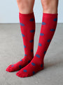 Pair of unisex socks in cotton blend, with colorful polka dots. Knee-high with elastic.