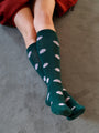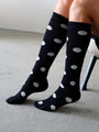 Pair of unisex socks in cotton blend, with colorful polka dots. Knee-high with elastic.