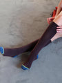 Coppia di calze unisex in misto cotone a coste grandi. Altezza al ginocchio, con punta e tallone con colore a contrastro.